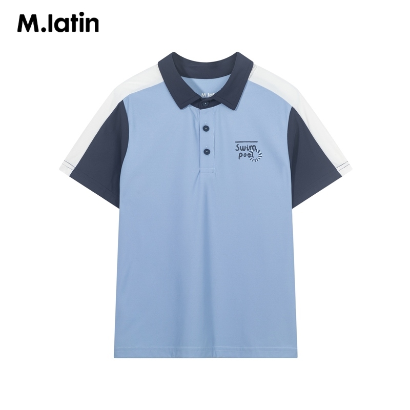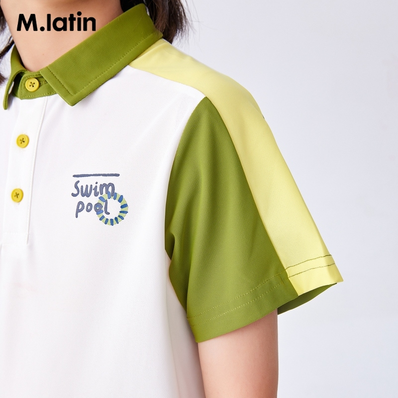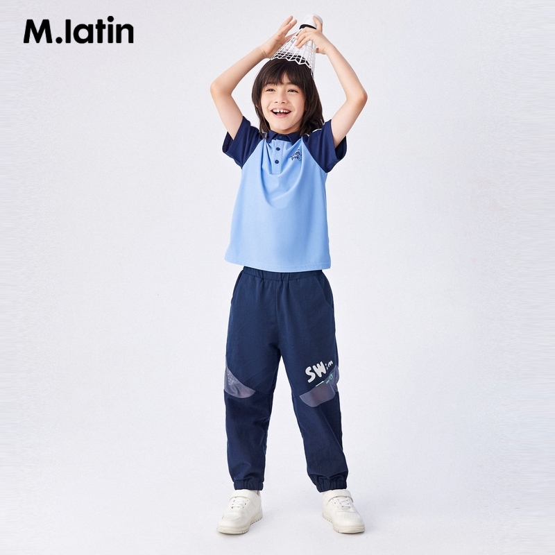 马拉丁童装儿童T恤夏装新款男童大童拼色印花polo领短袖T恤