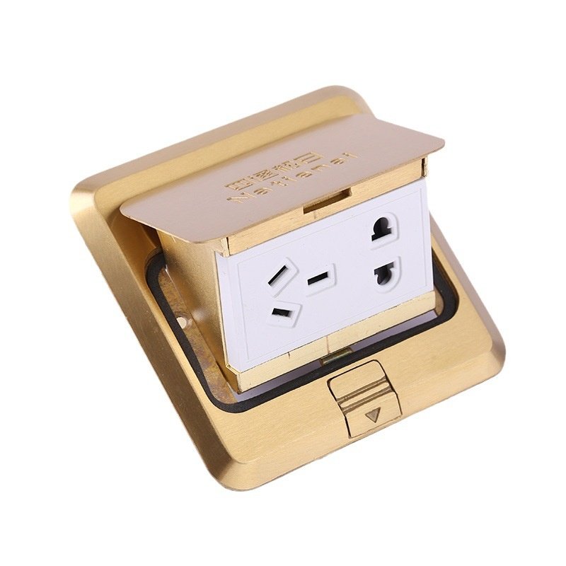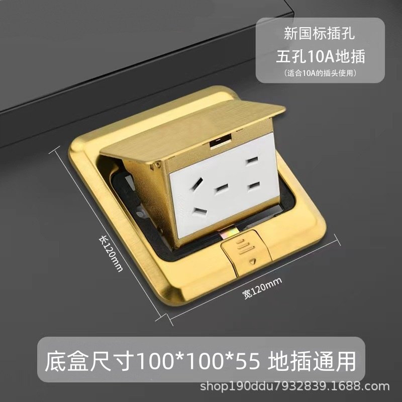 全铜地插快弹慢弹 四通松日弹起式香槟金防水地面插座 五孔地插