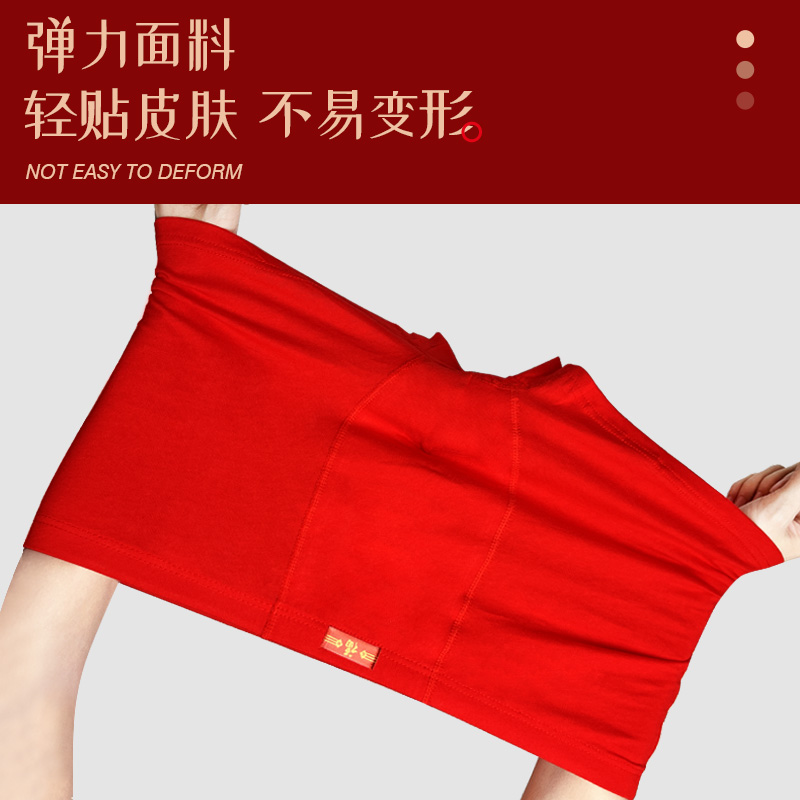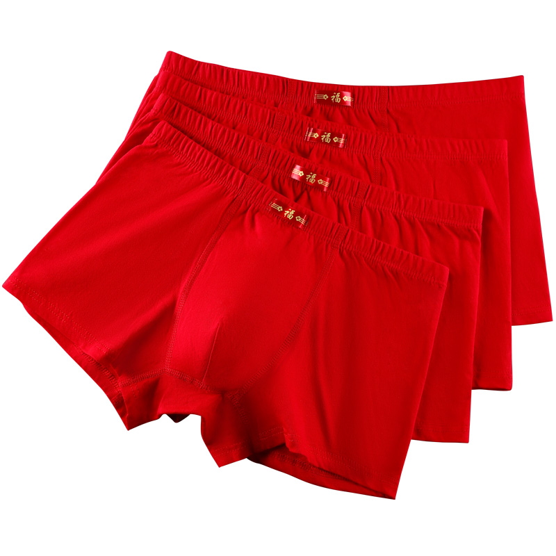 本命年红色内裤男纯棉抗菌四角裤衩男平角短裤头结婚送礼属兔透气