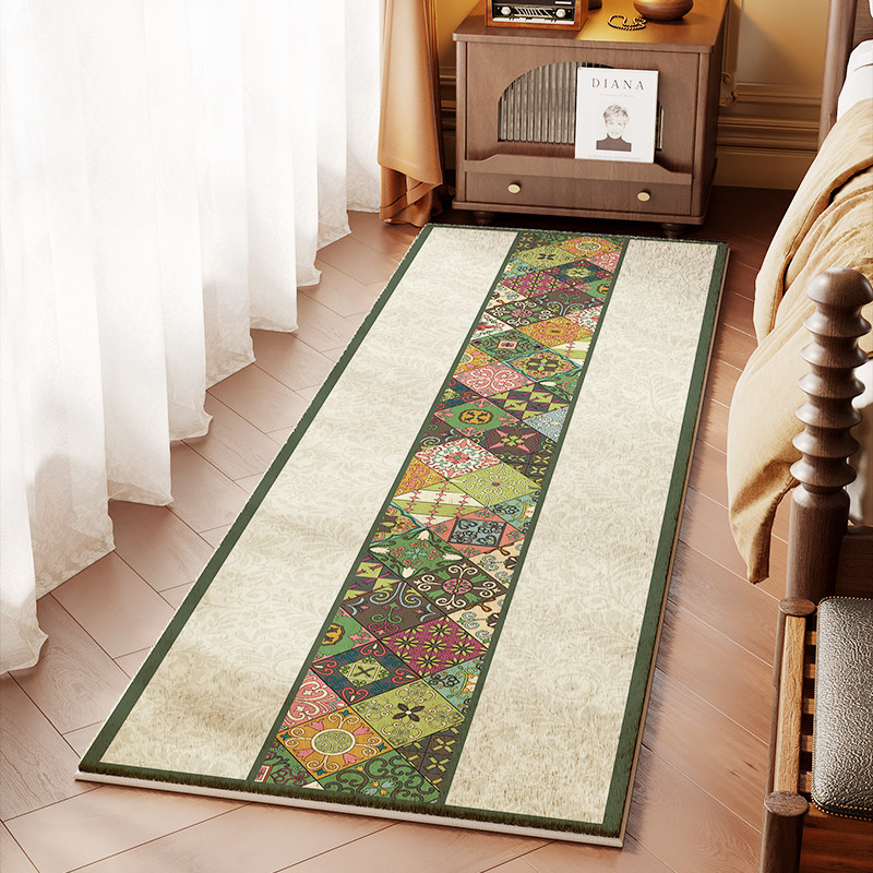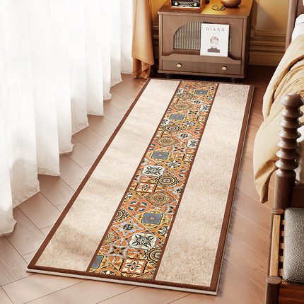 美式复古床边地毯卧室床前长条毯子仿羊绒加厚主卧床尾免打理地垫