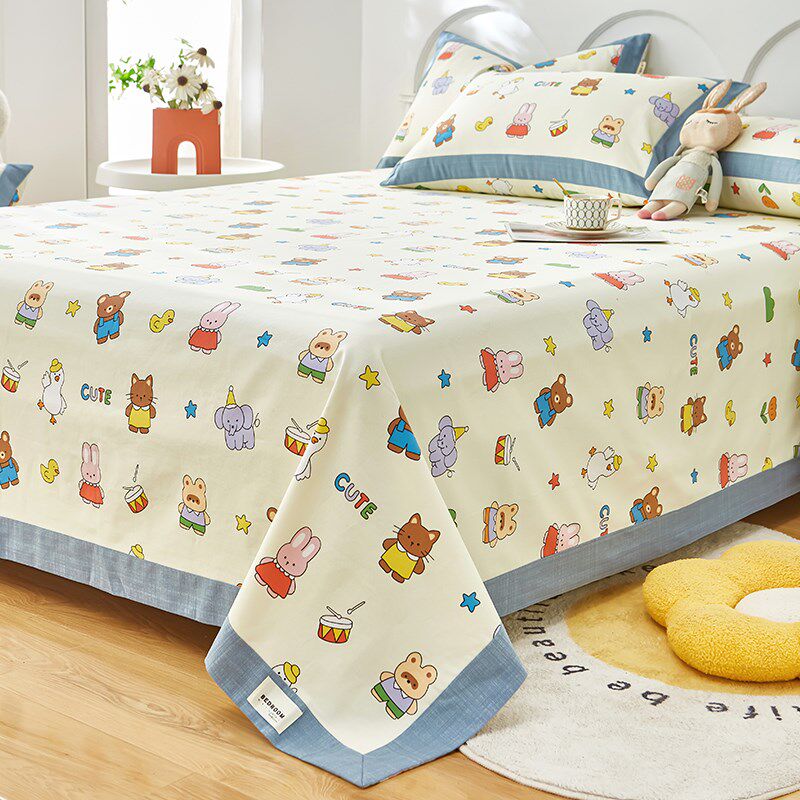 全棉加厚老粗布床单100纯棉被单婴儿G童宿舍卡通印花床单三件套a