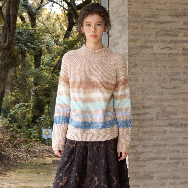 TALASA商场同款羊毛马海毛毛衣女2025冬新款复古高领插肩显瘦保暖