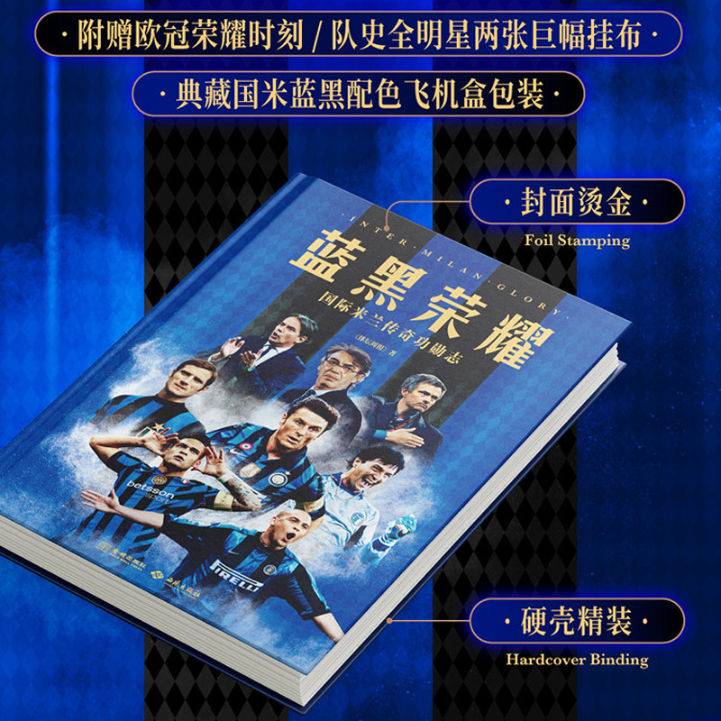 《蓝黑荣耀:国际米兰传奇功勋志》辉宏史诗 逾200张全彩大图 国米队史球星 名帅 典藏资料数据 超值附赠两套1米宽巨幅布面海报