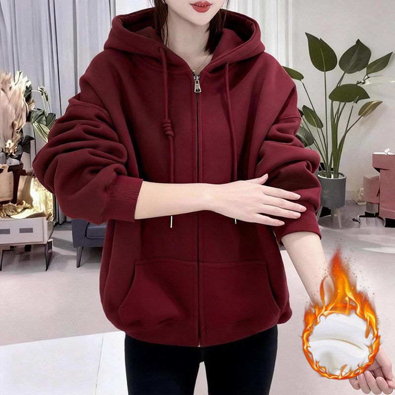 欧美风oversize连帽加绒胖mm超好看厚卫衣女拉链大码上衣开衫外套