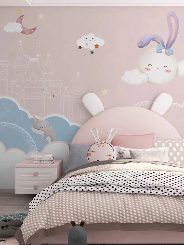 卧室男孩儿童房间数码印花卡通壁纸背景墙太空主题装饰幼儿园壁画