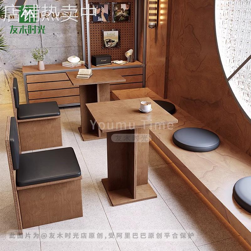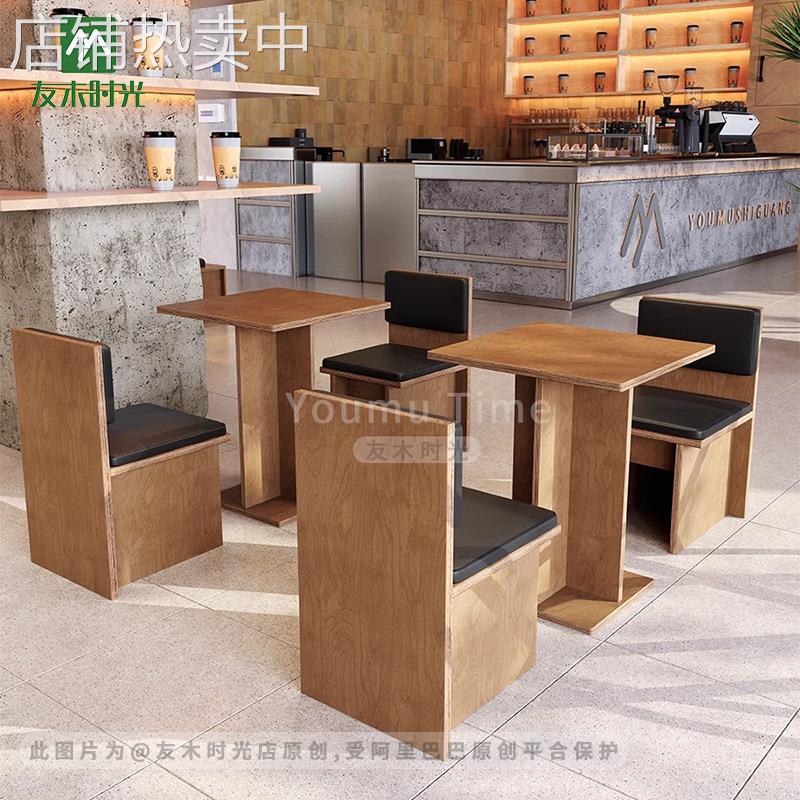韩系网红奶茶店海洋板桌椅简餐甜品烘焙店卡座休闲咖啡厅桌椅组合