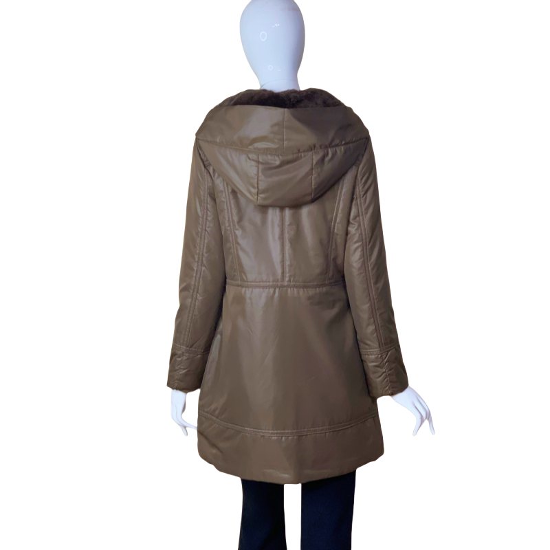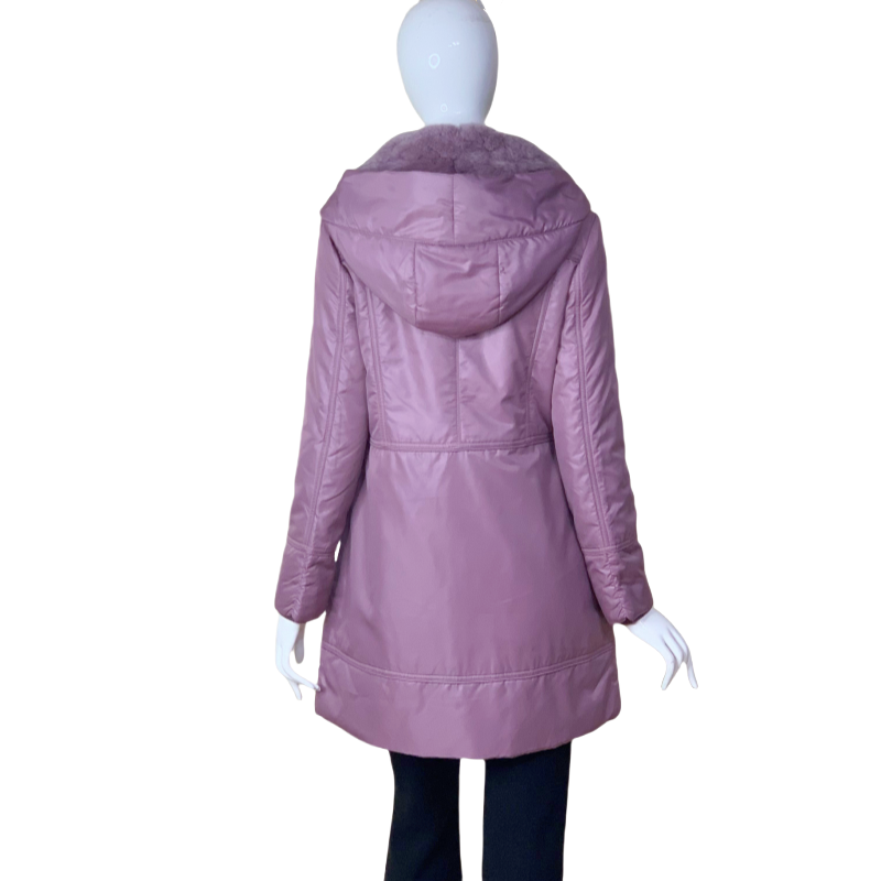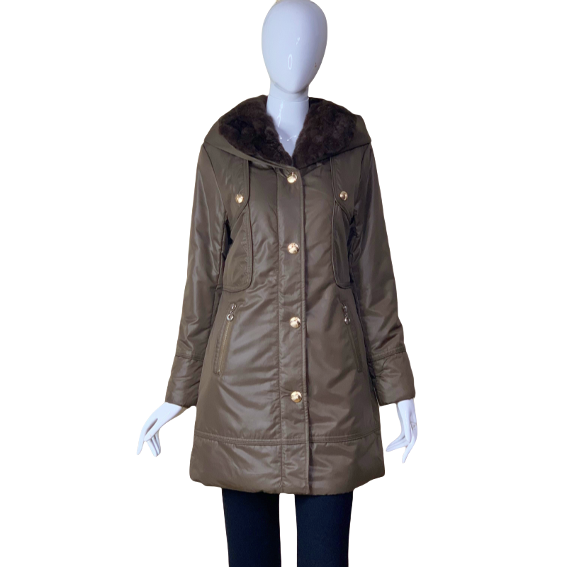 獭兔毛中长收腰中年妈妈驼绒棉衣