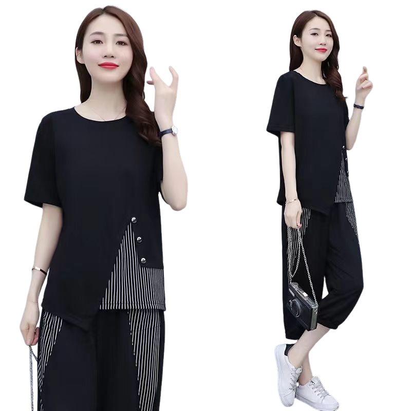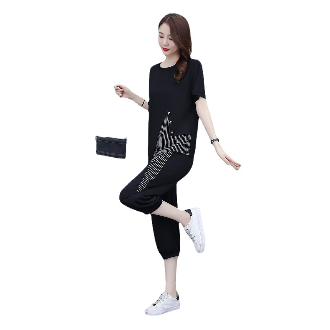 潮流休闲运动套装女宽松大码女装显瘦夏装新款短袖女七分裤两件套