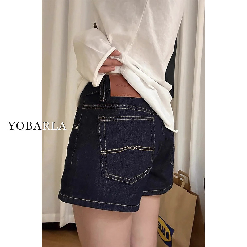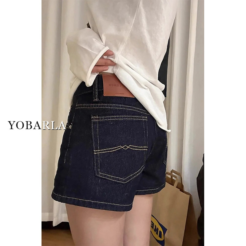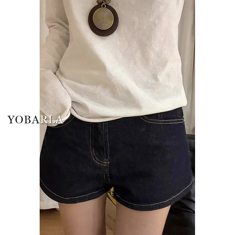 深蓝色牛仔短裤女夏季薄款大码胖mm梨型身材显瘦高腰a字阔腿热裤