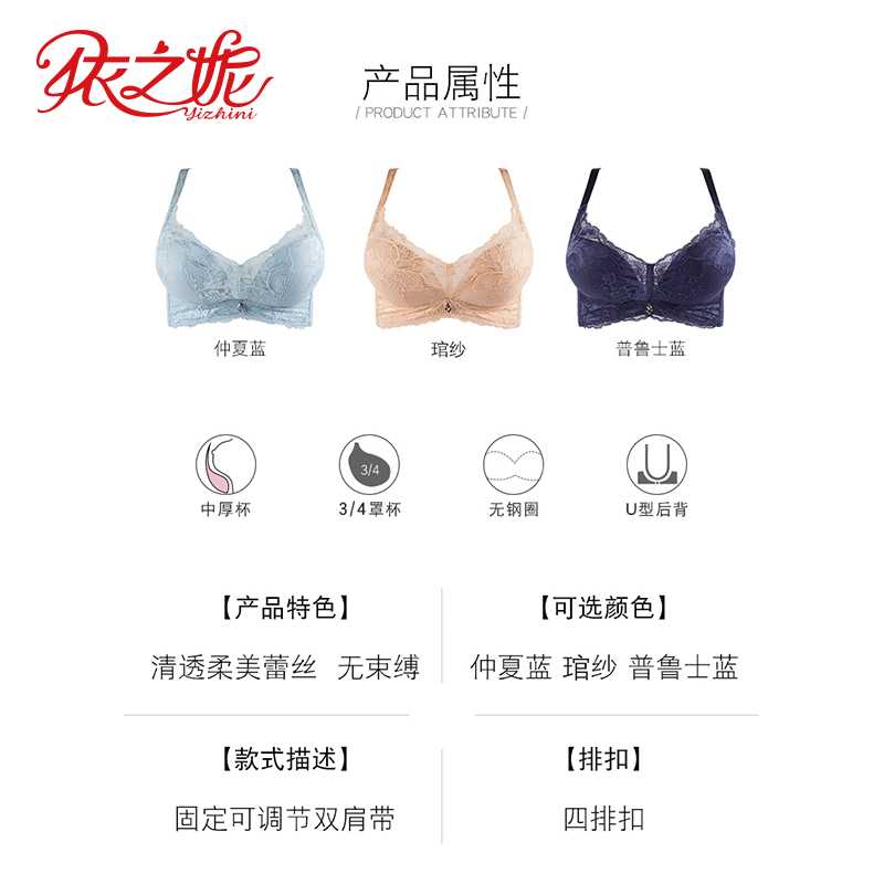 依之妮摩登内衣无钢圈中厚4排扣小胸显大聚拢调整型文胸M1317J8A2