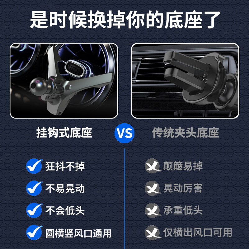 新款车载手机支架17mm球头底座配件挂钩式圆形空调出风口手机支架