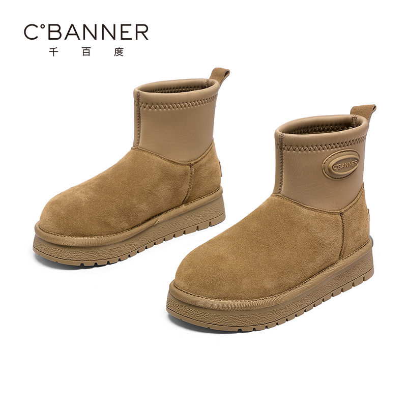 千百度雪地靴女冬季新款加绒保暖棉靴子防滑厚底增高短筒靴子