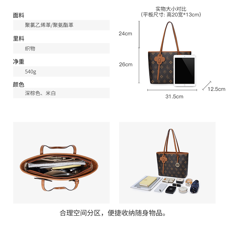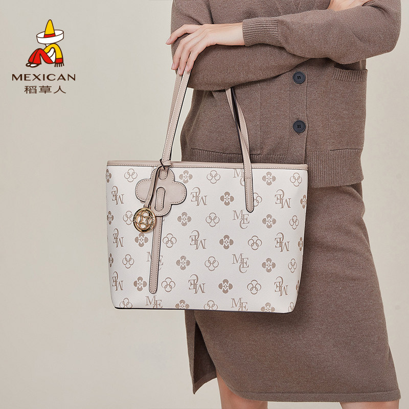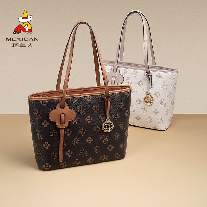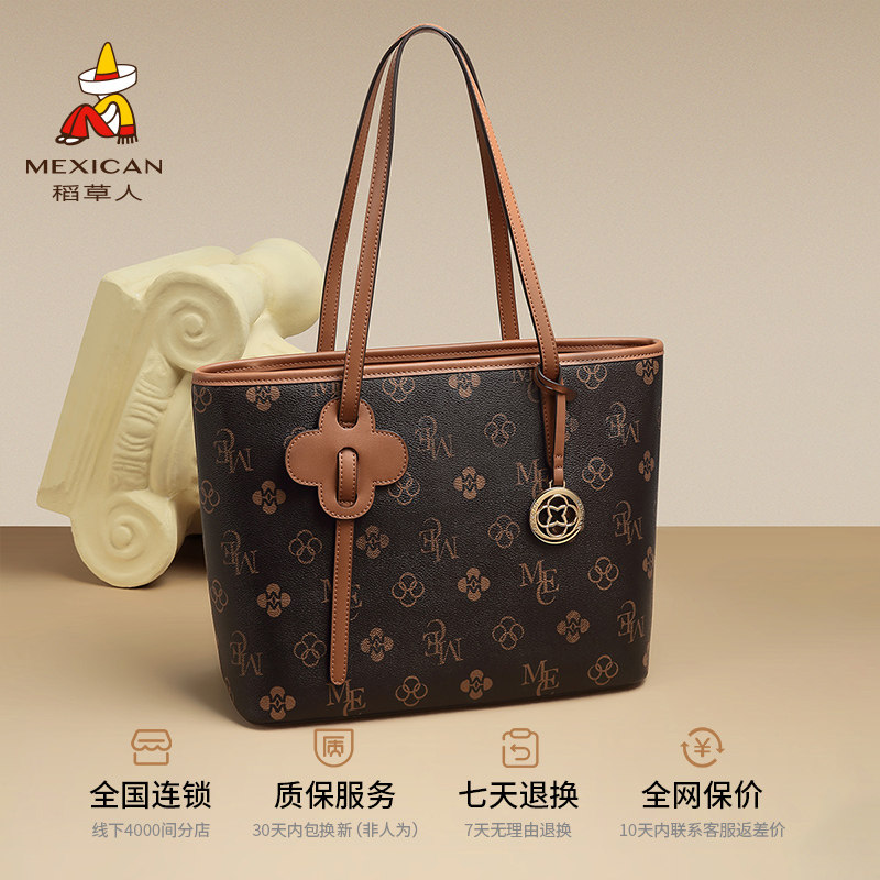 稻草人包包女时尚百搭通勤单肩包小众简约老花手提包高级感托特包