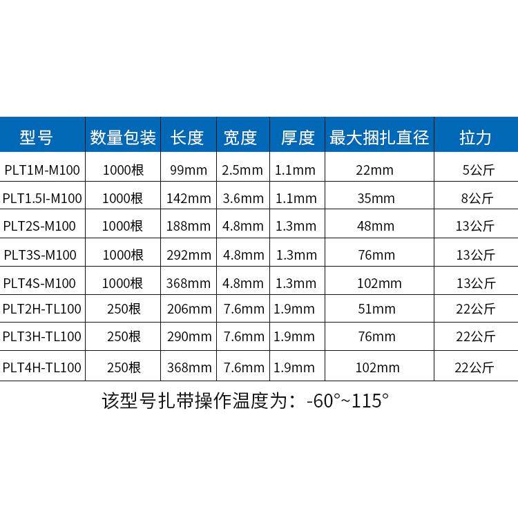 美国泛达聚丙烯PP扎带PLT1M-M100耐酸碱耐腐蚀黑色耐高温束线带