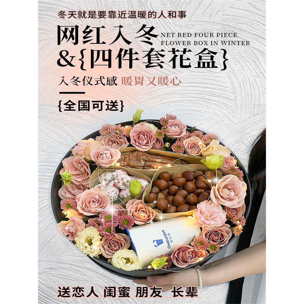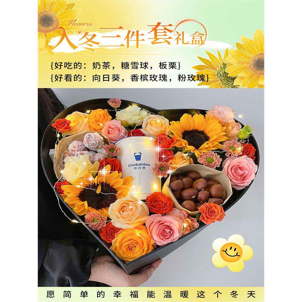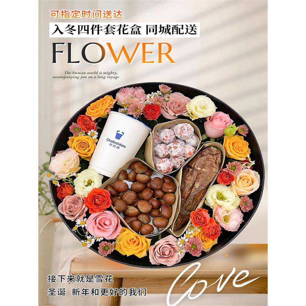 全国入秋四件套礼盒立秋奶茶板栗花束配送闺蜜女生日鲜花同城速递