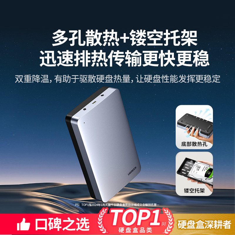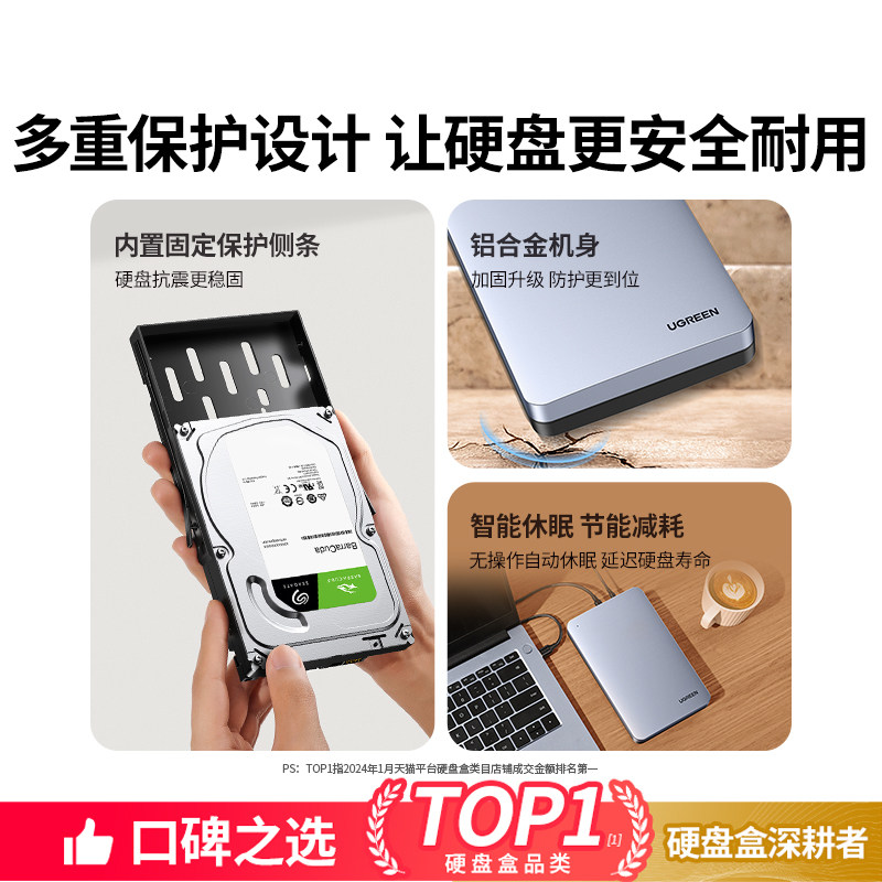 绿联移动硬盘盒子3.5/2.5英寸电脑usb通用sata机械移动改外接读取