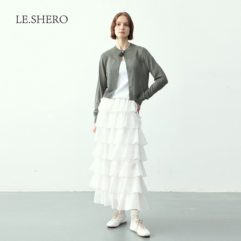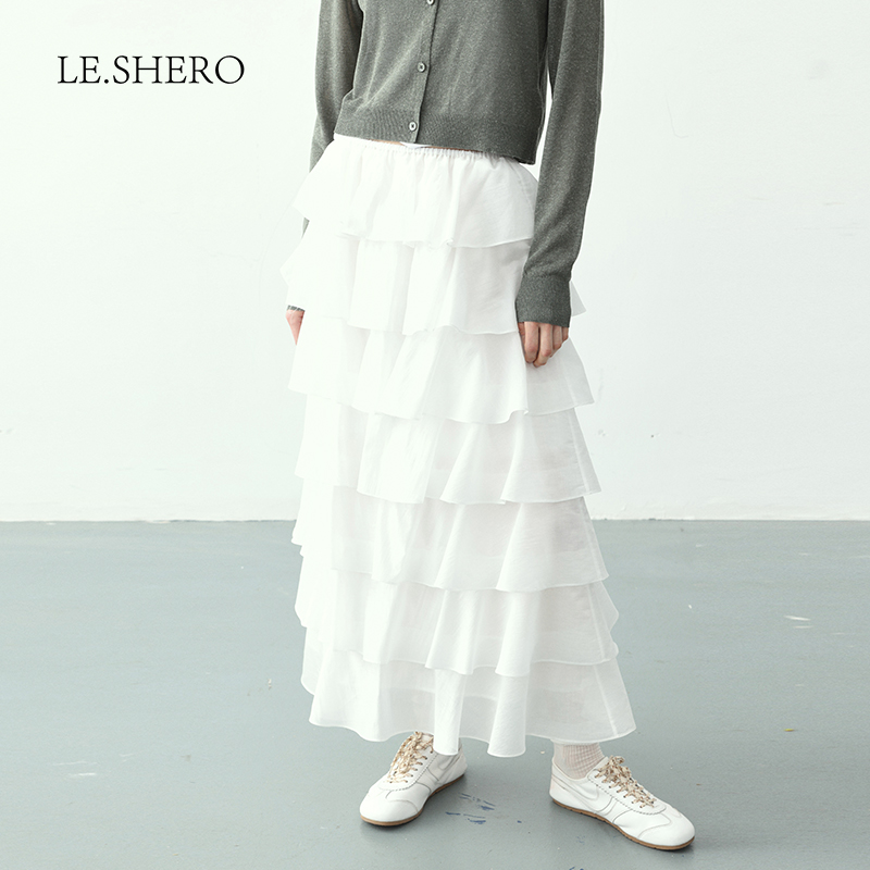 LE.SHERO优雅气质白色半身裙女夏2025新款设计感浪漫温柔a字裙子