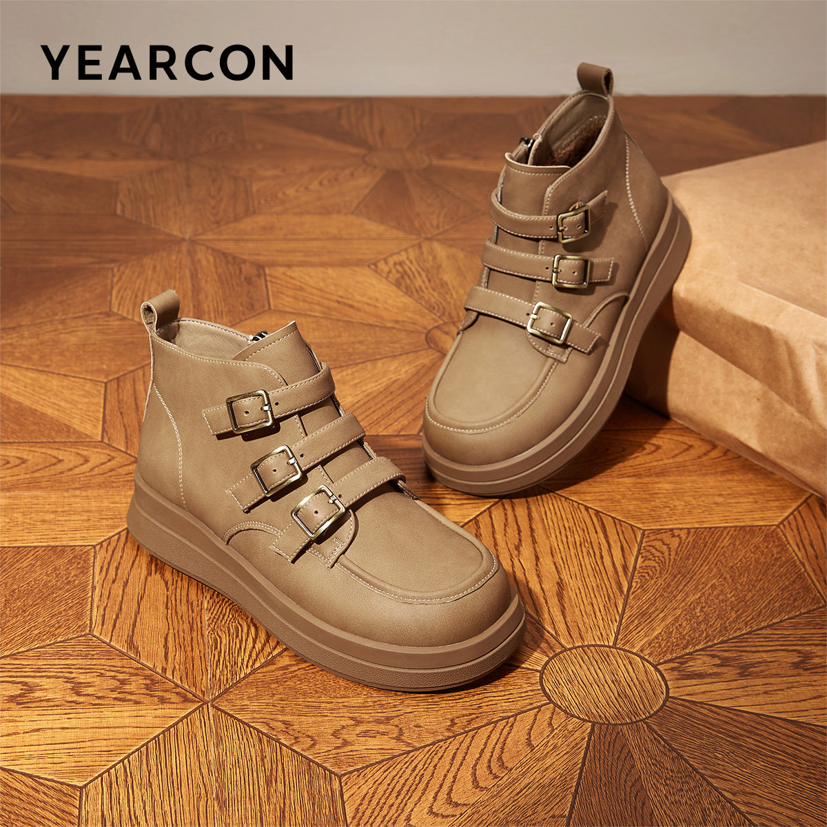 意尔康女鞋冬季时尚加绒保暖高帮勃肯运动休闲棉鞋平底板鞋雪地靴
