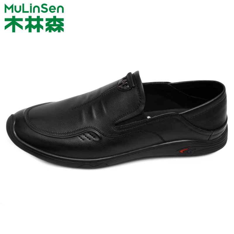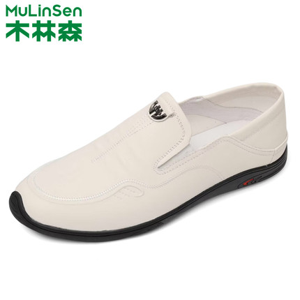 木林森男鞋2025夏季新款休闲皮鞋男真皮舒适一脚蹬懒人软底爸爸鞋
