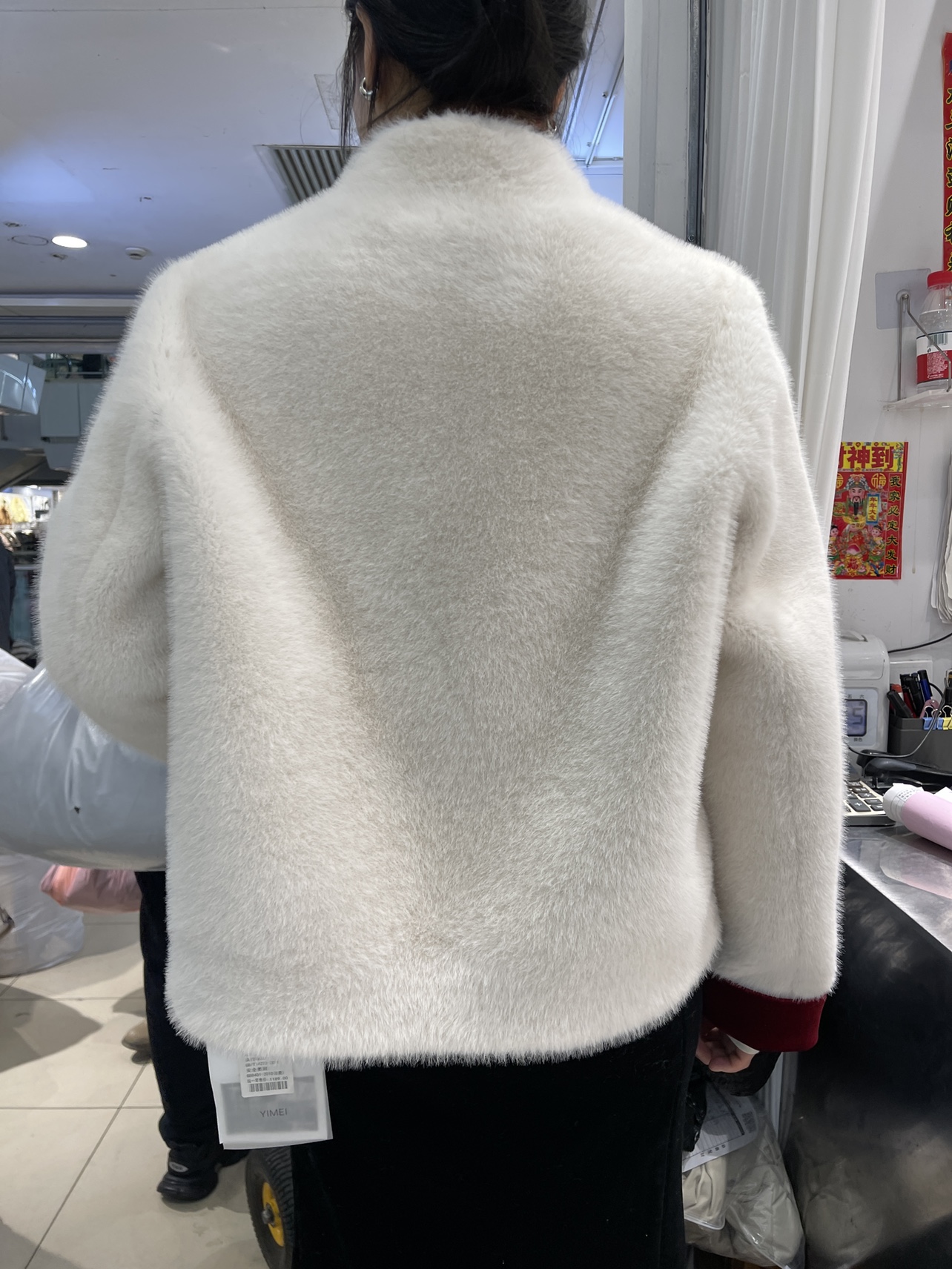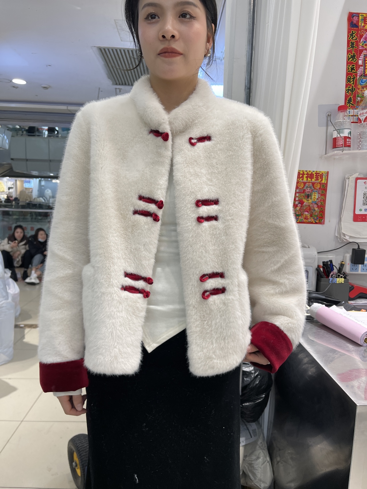 新年高级感冬新仿水貂皮毛一体减龄短外套中式国风盘扣女上衣保暖