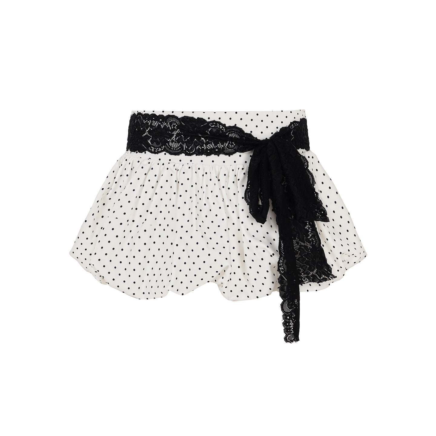 黑白撞色波点蕾丝拼接花苞半身裙