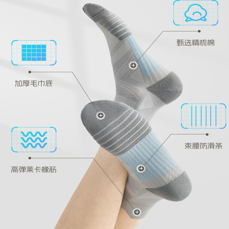专业运动袜子男款中筒防臭吸汗男士跑步专用徒步减震毛巾底篮球袜