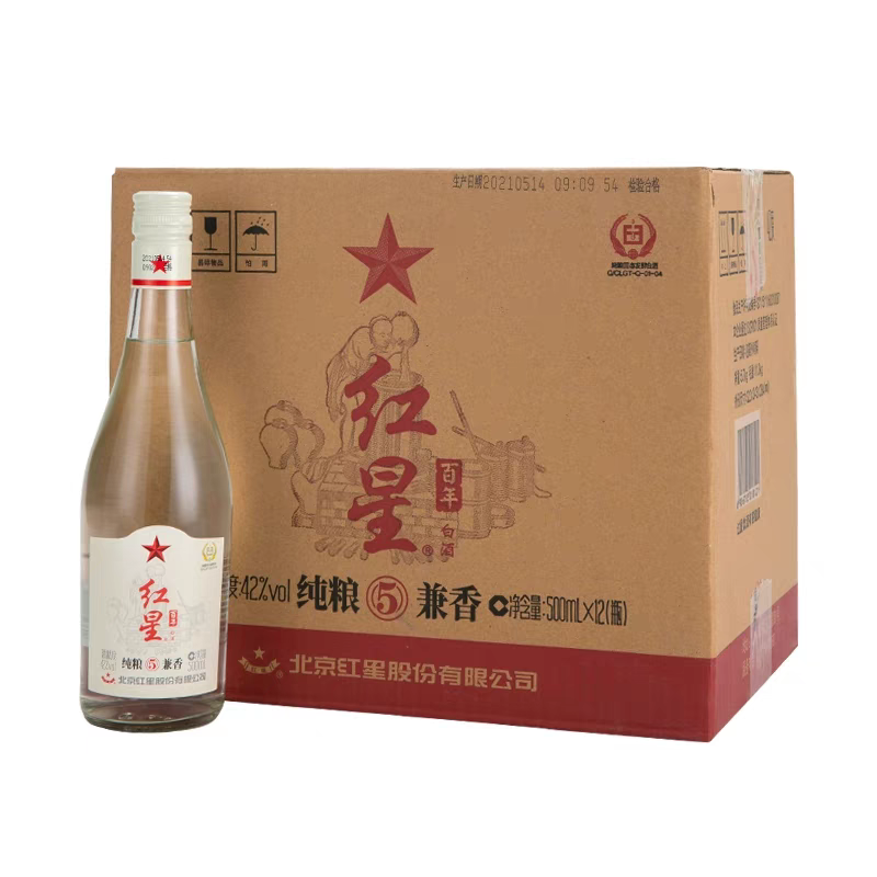 【原箱源码】红星二锅头42度500ml*12瓶纯粮兼香5陈酿白酒兼香型