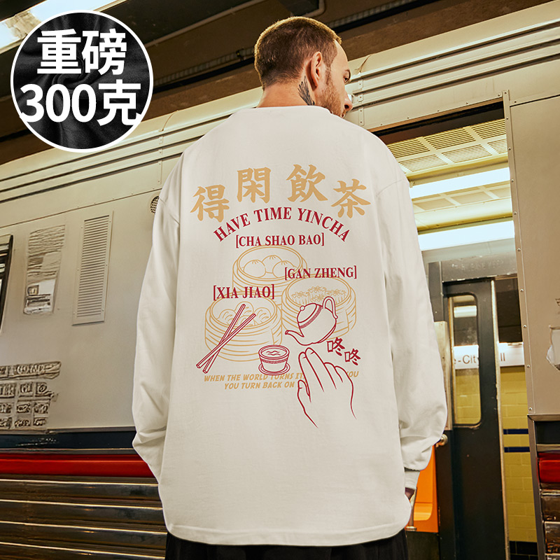 oversize港风纯棉潮牌胖子男装加肥加大码国潮ins宽松长袖T恤潮流
