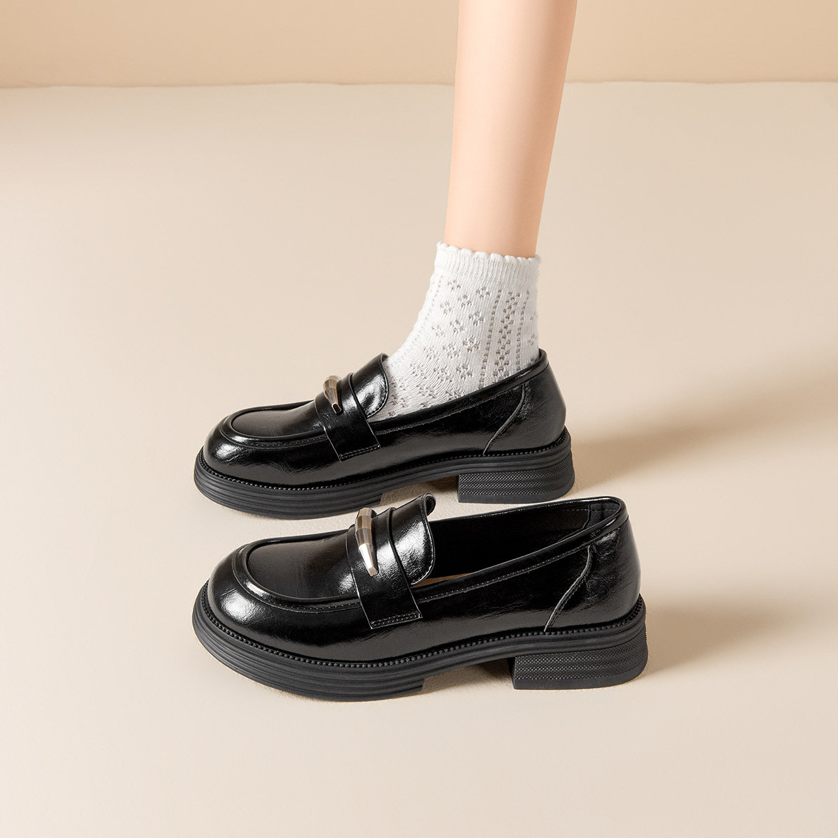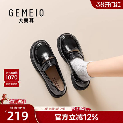 戈美其商场同款学院风黑色乐福鞋女厚底2026年春新款小皮鞋一脚蹬