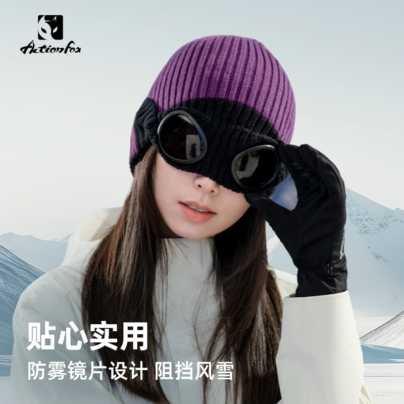 Actionfox快乐狐狸保暖针织眼镜帽男女时尚防寒保暖抓绒毛线帽
