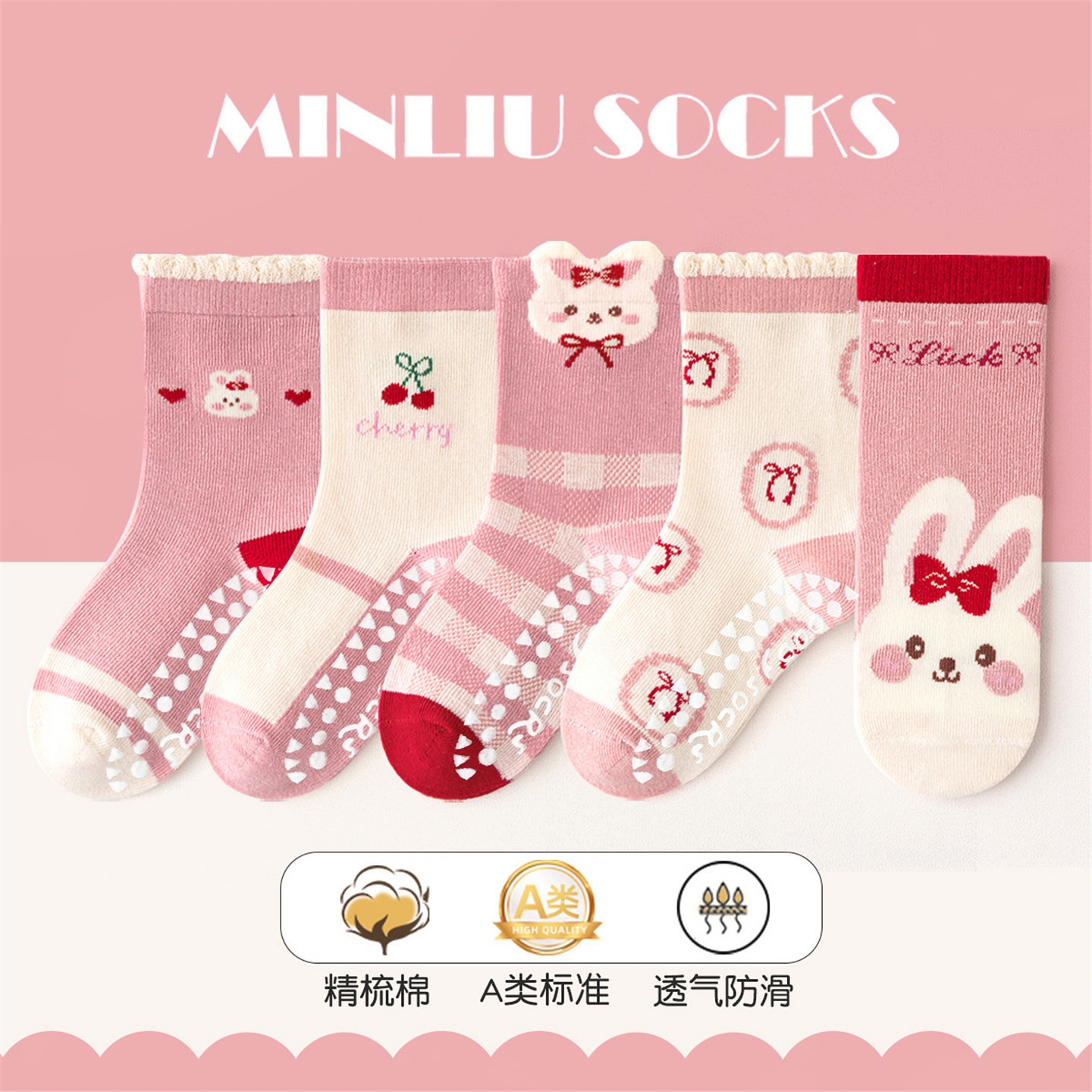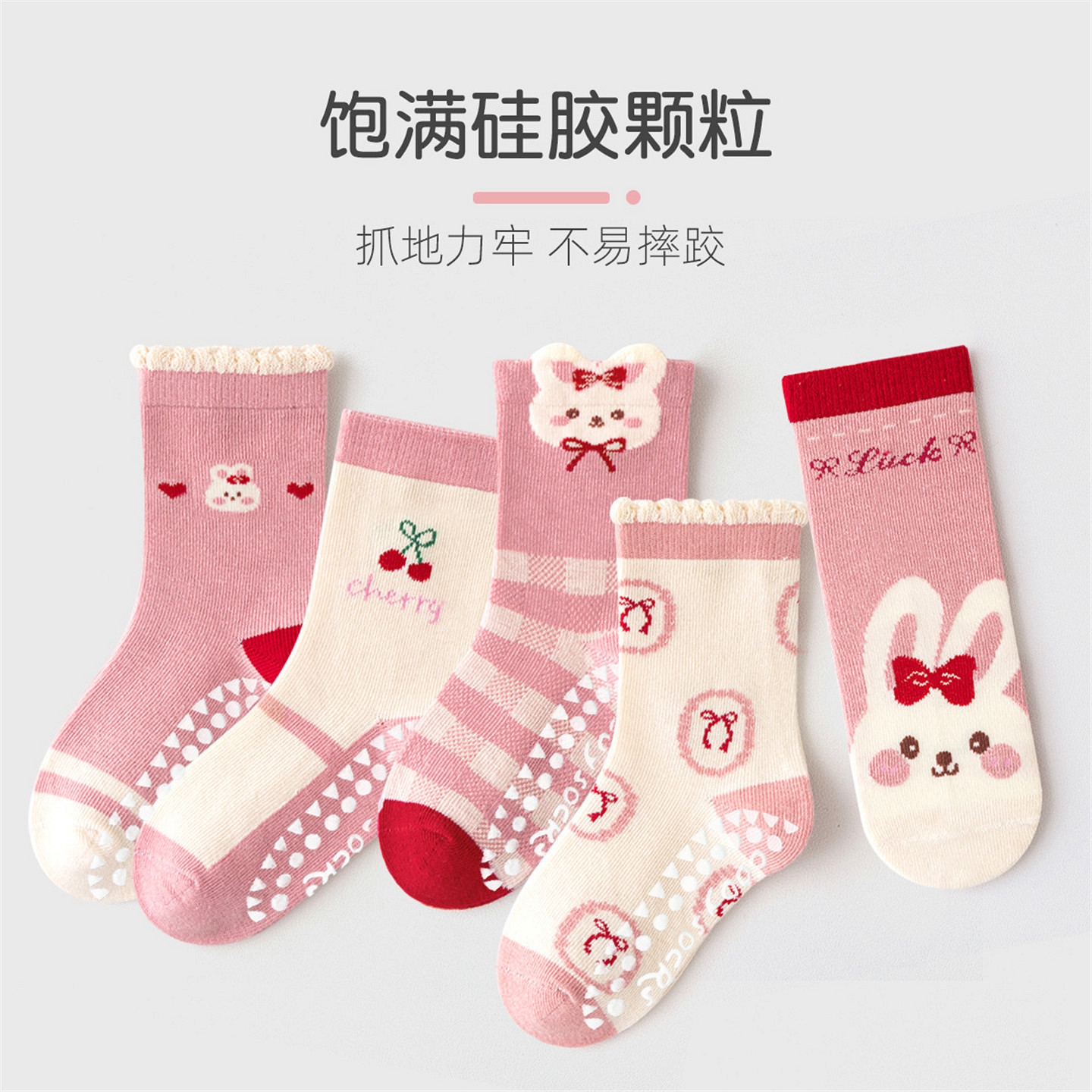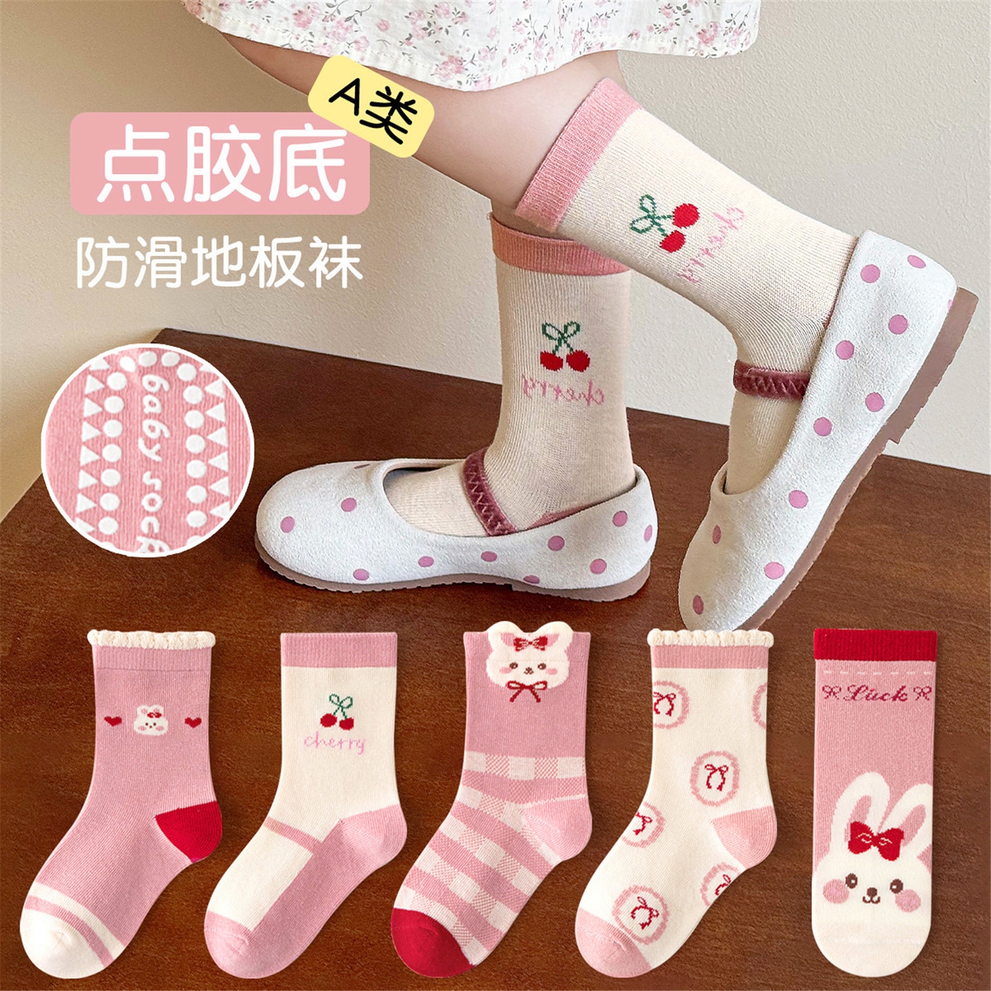 儿童袜子春秋女孩宝宝地板袜1-3-7-9岁纯棉卡通女孩女童防滑隔凉