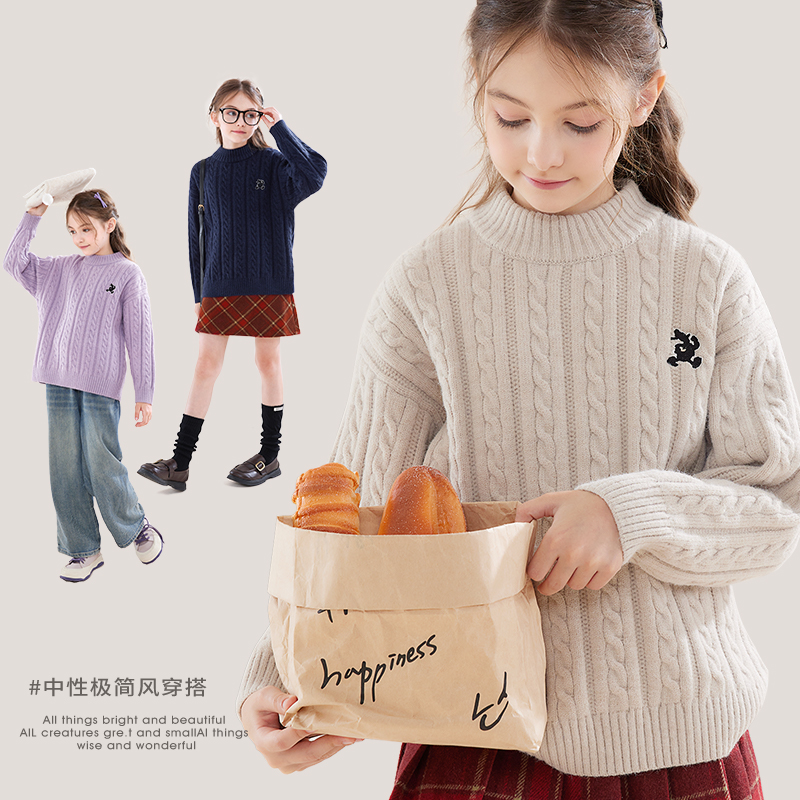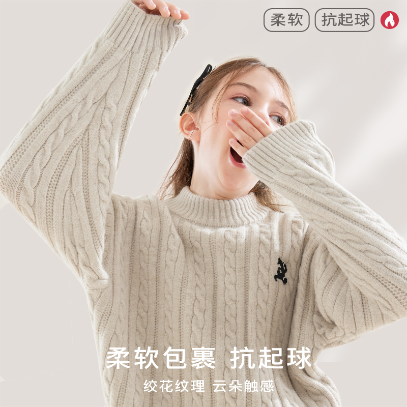 迪士尼女童毛衣儿童针织打底衫2025秋季新款大童秋冬加厚保暖童装