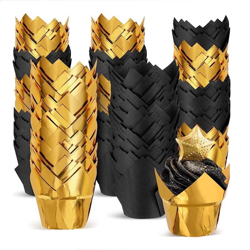 派对生日甜品台亮金烘焙纸杯黑色烘焙纸杯麦芬杯耐高温蛋糕纸托