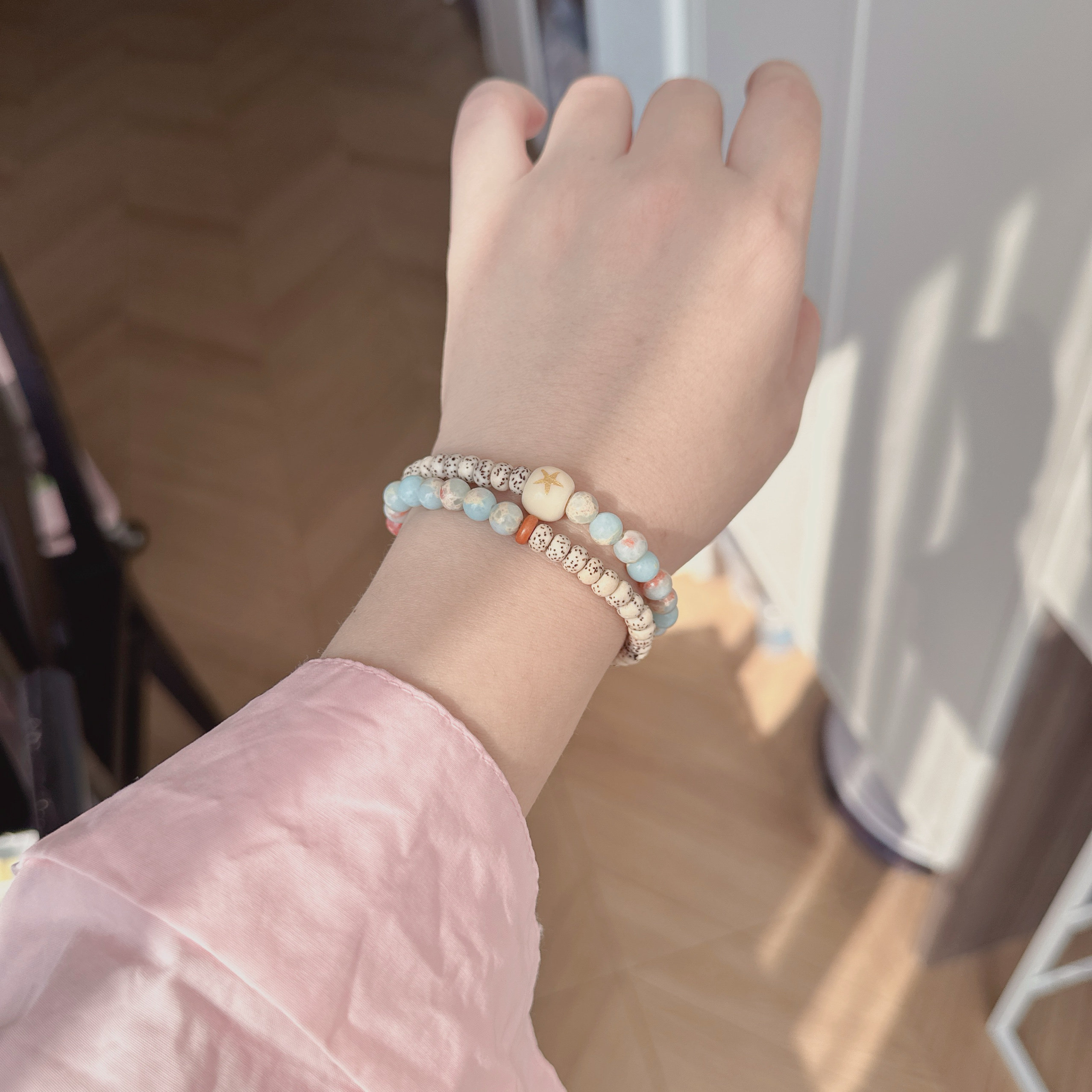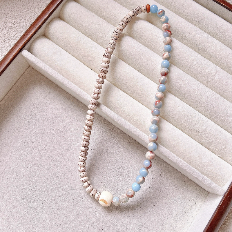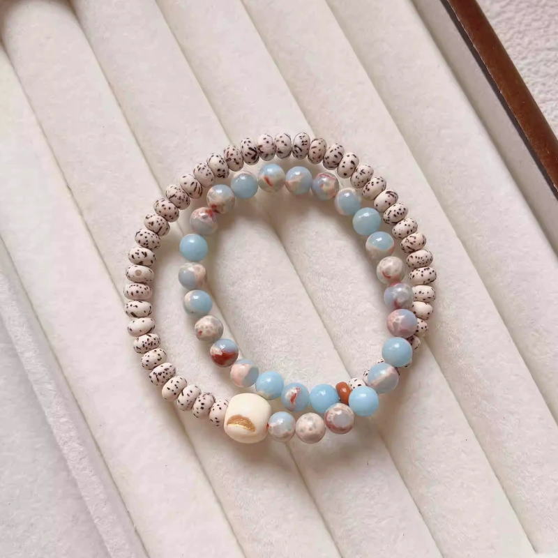 星月菩提寿山石6mm半山半水新中式素雅清冷感好运配饰双圈手串
