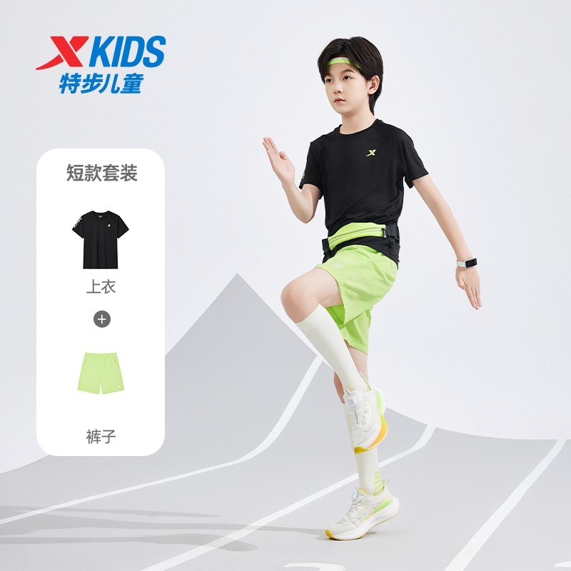 特步童装儿童套装男童夏季新款速干女童运动服中大童透气短袖短裤