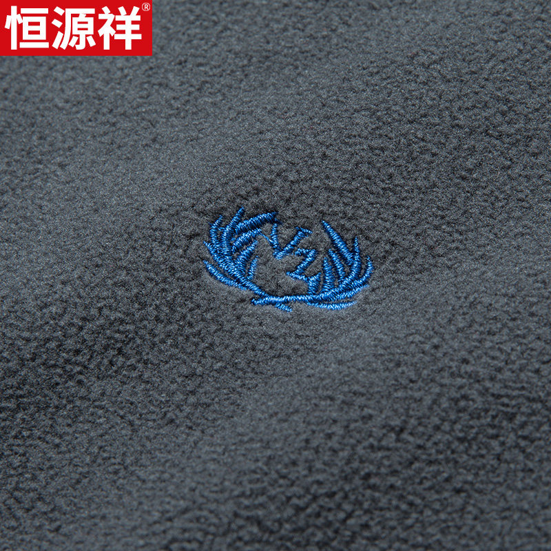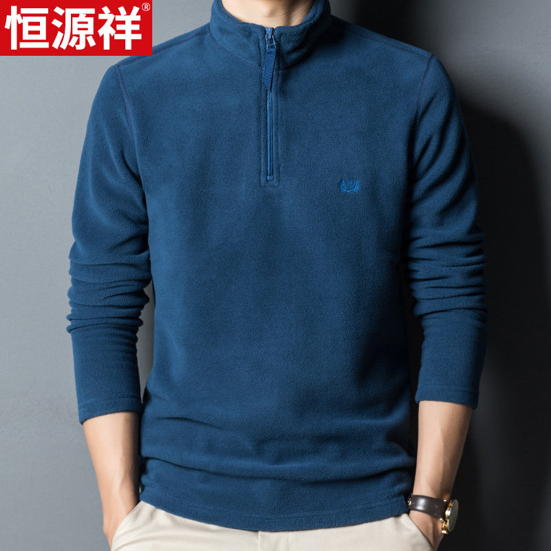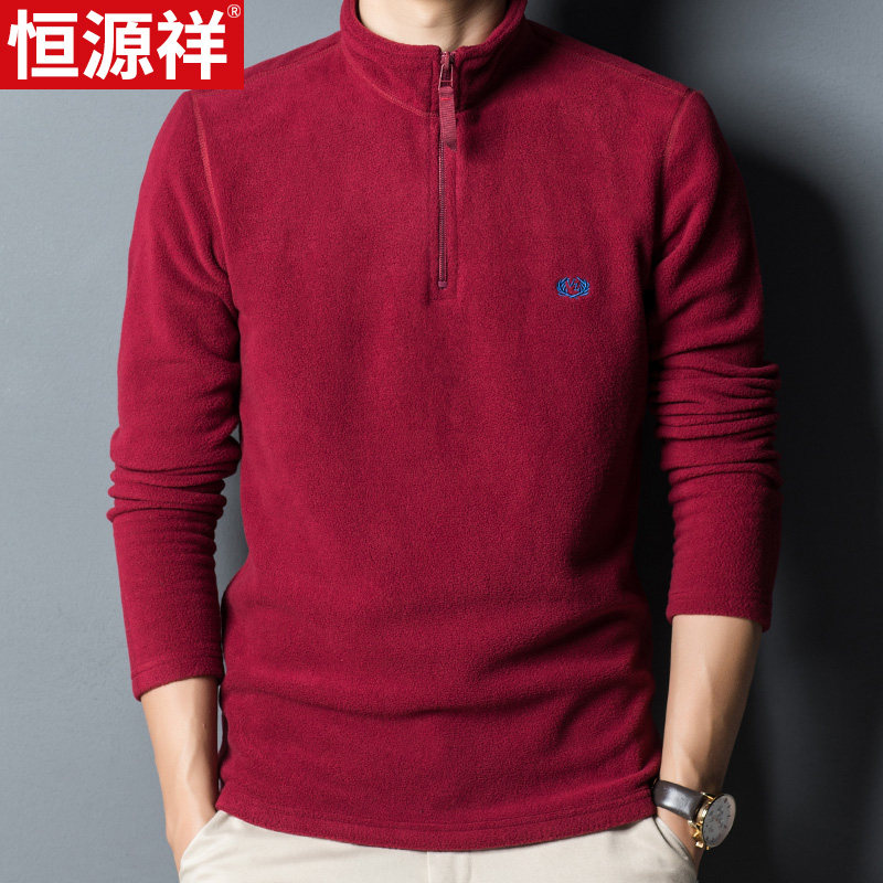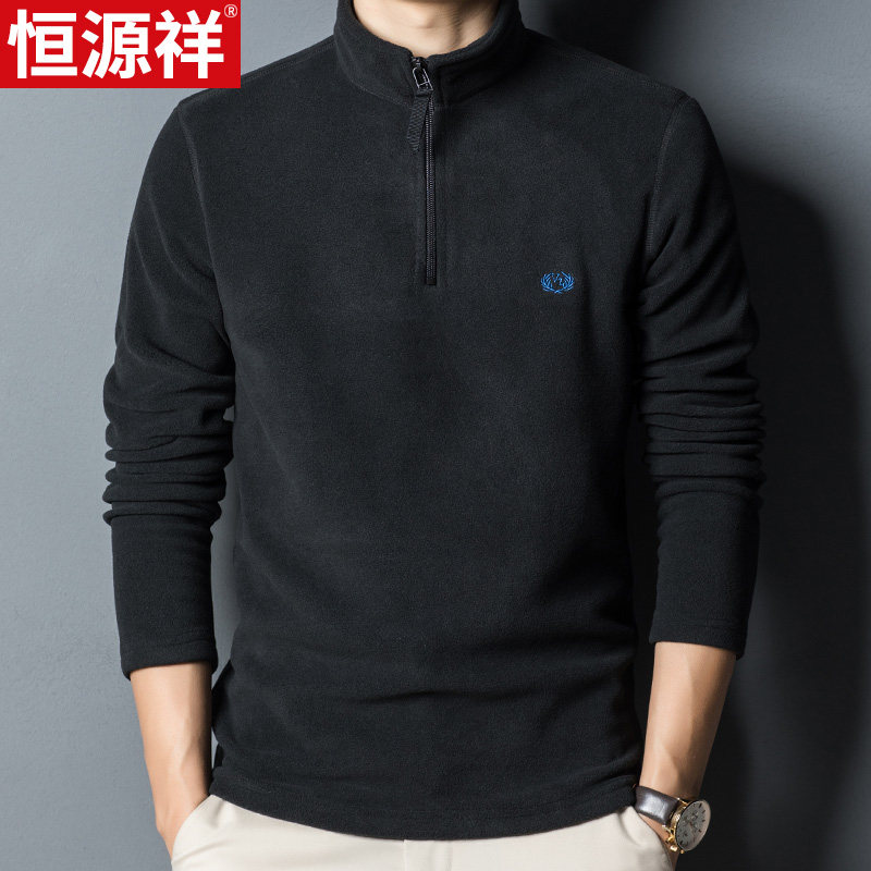 恒源祥半高拉链领抓绒长袖t恤男加绒男的摇粒绒卫衣冬季打底衣服