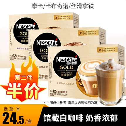 Nestle雀巢咖啡金牌馆藏丝滑拿铁卡布奇诺速溶白咖啡粉摩卡12条装