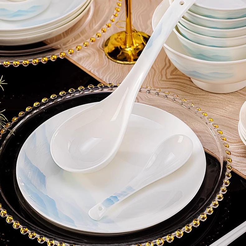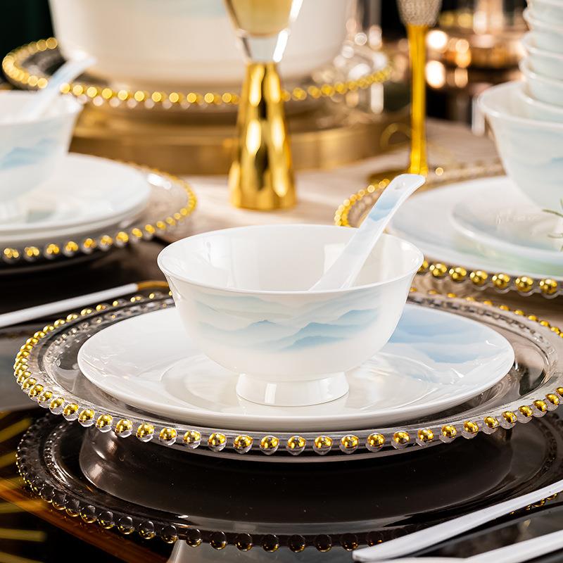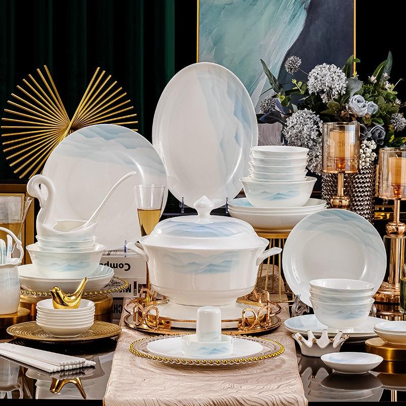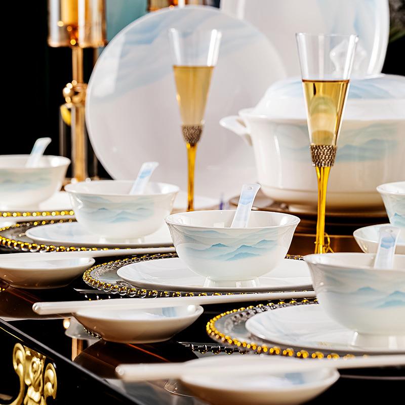 2024新款高档碗碟套装家用景德镇釉中彩骨瓷餐具乔迁新居碗盘碟