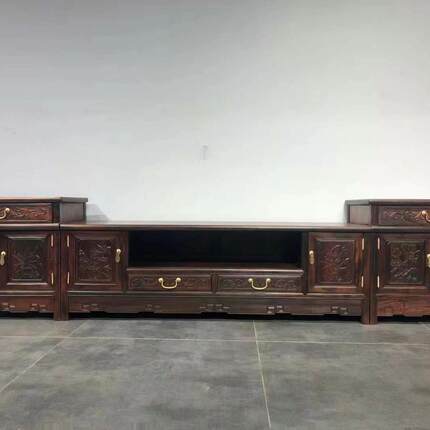 正品国标红木-老挝大红酸枝屏网款电视交趾黄檀秒变组合加长地柜