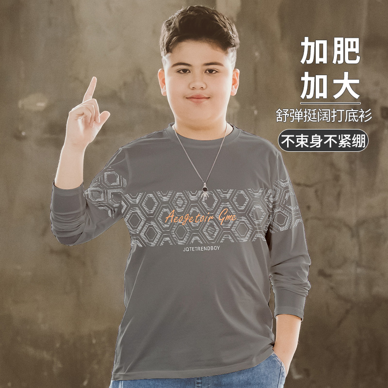男大童长袖T恤大码青少年胖孩子童装初中学生加肥加大打底衫t儿童