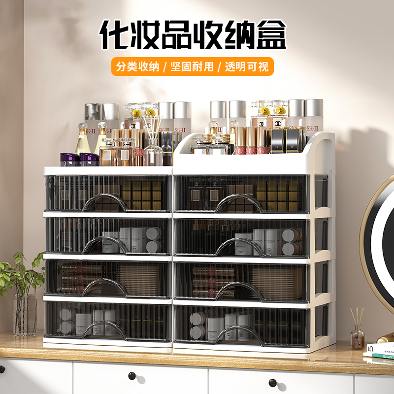 透明化妆品收纳盒多功能多层抽屉式桌面收纳柜文具杂物收纳储物柜