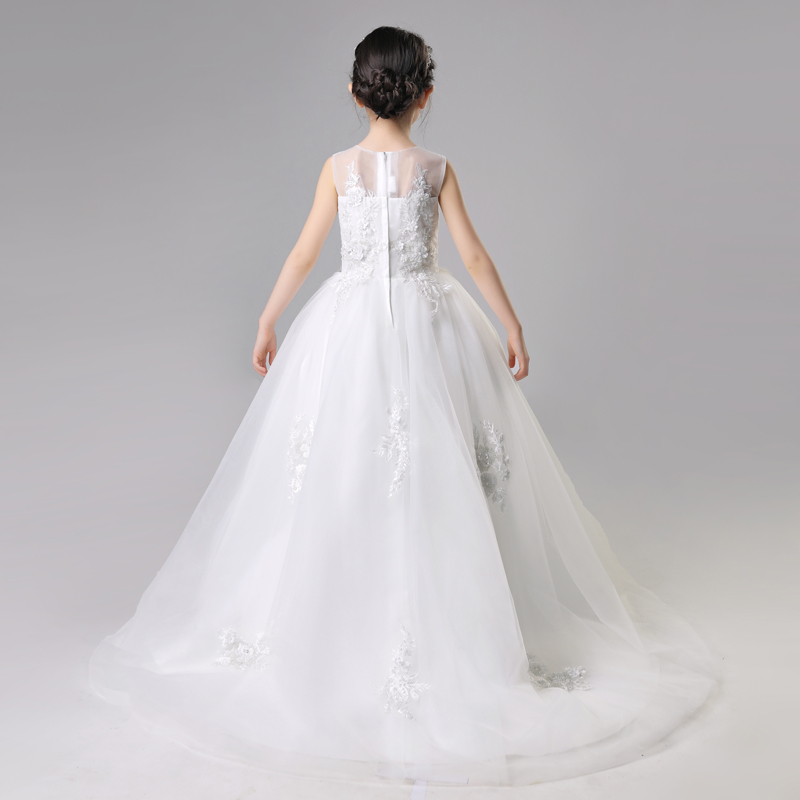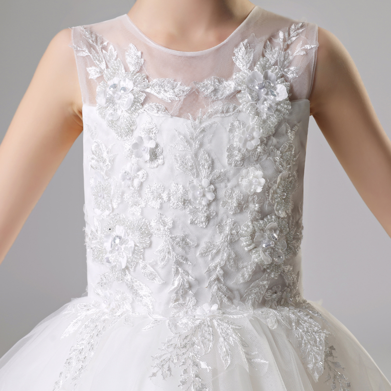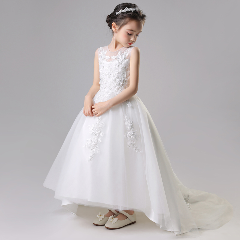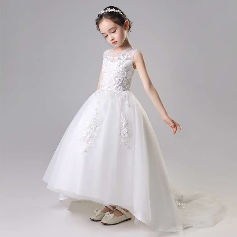 儿童晚礼服裙女童公主婚纱蓬蓬纱小孩拖尾主持模特走秀钢琴演出服