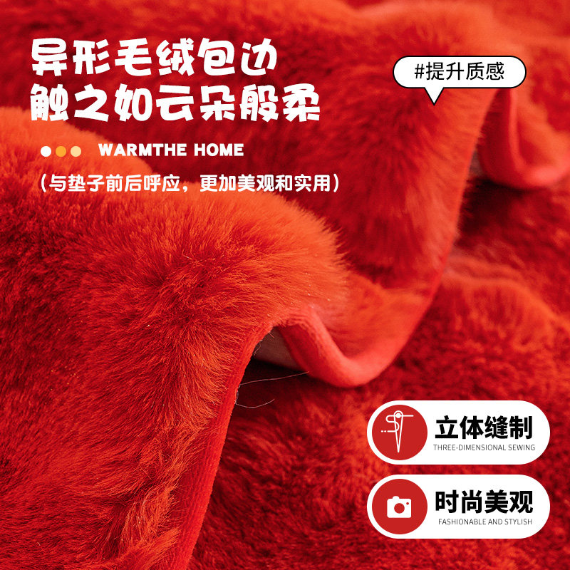 红色冬季沙发垫2026新款兔毛绒结婚喜庆沙发坐垫防滑异形直排盖布