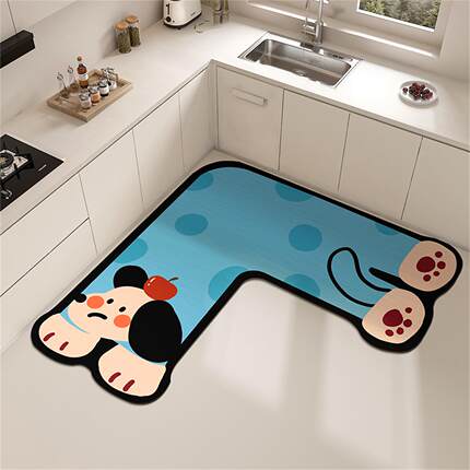 厨房L型地垫可定制脚垫蓝色小狗转角专用洗碗槽吸水吸油防滑地毯