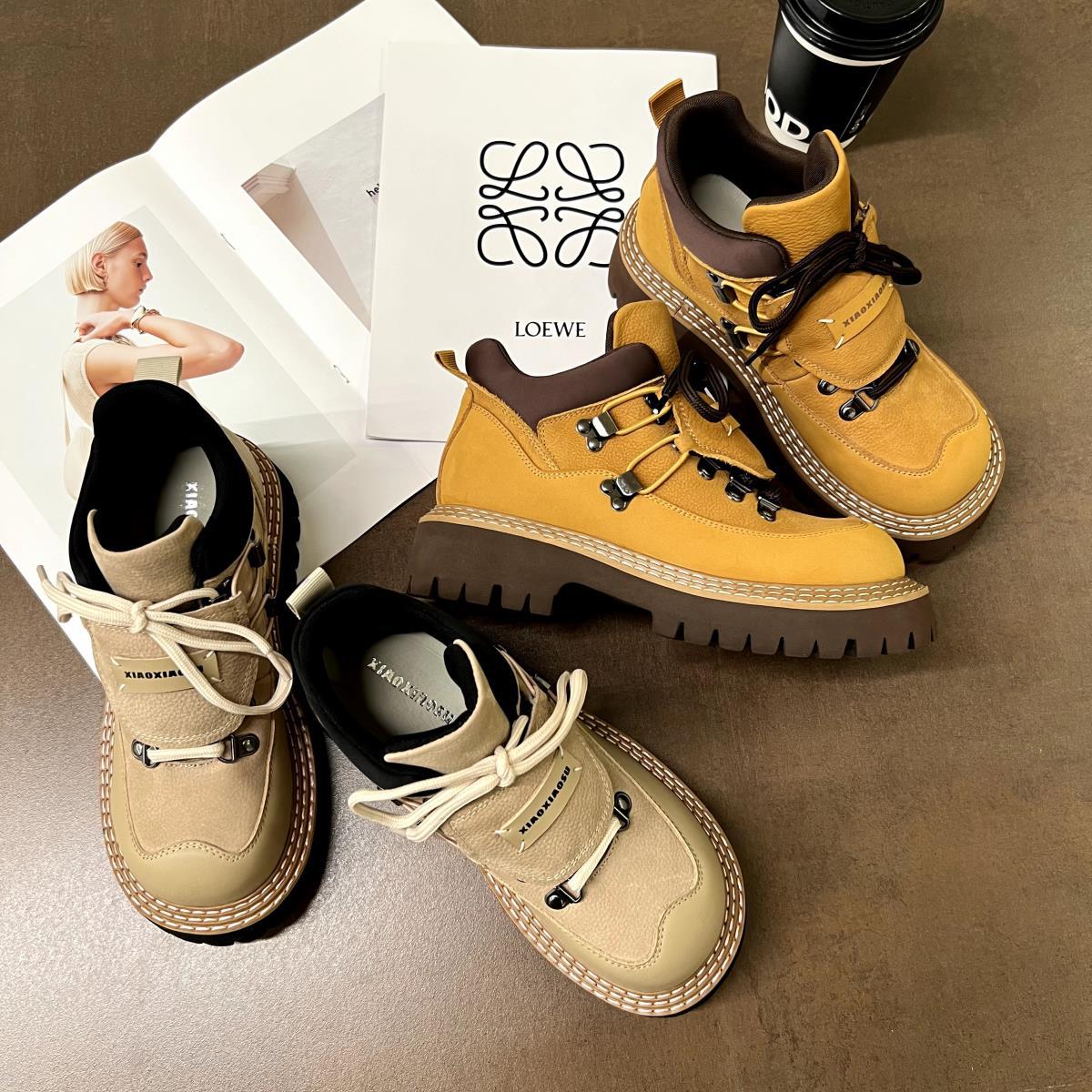 复古马丁靴女2025港风系带缝制高帮鞋厚底工装靴时尚百搭大黄靴