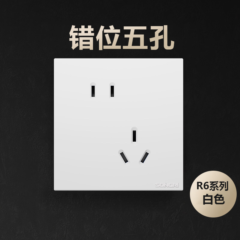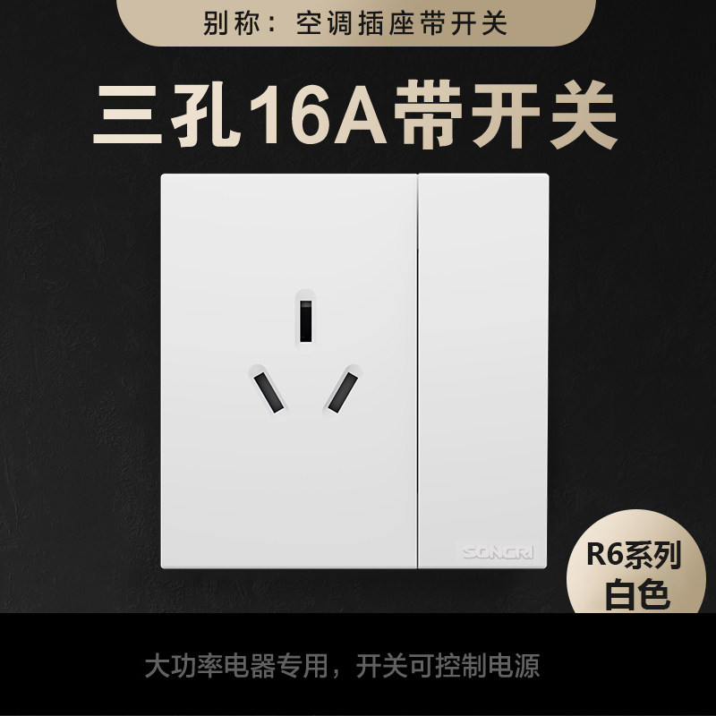 松日开关插座R6雅白色超薄面板多孔家用暗装五孔墙壁16A空调灰色