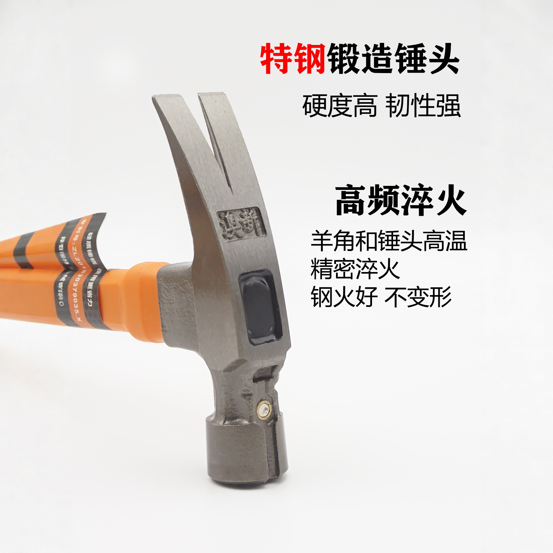 澳新工具特钢羊角锤子工地木工直角弯角铁锤榔头起钉锤带磁吸钉