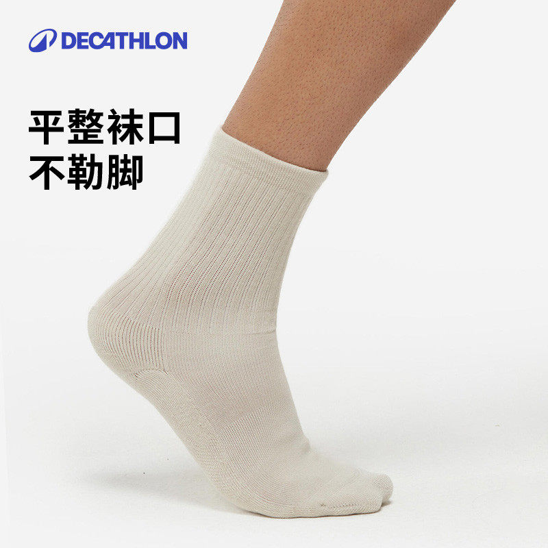 迪卡侬官方袜子男中筒袜长筒袜女春季透气纯色男士长袜四双装OVA1