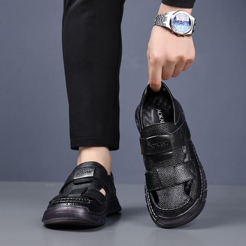 奥康 凉鞋男款真皮2025新款沙滩鞋夏季包头透气爸爸鞋户外休闲鞋H