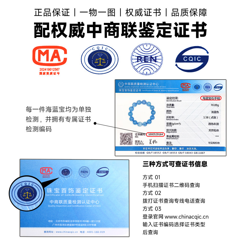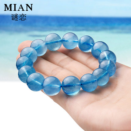 天然海蓝宝手链女正品巴西老矿料宝石级冰种海蓝宝手串男送证书